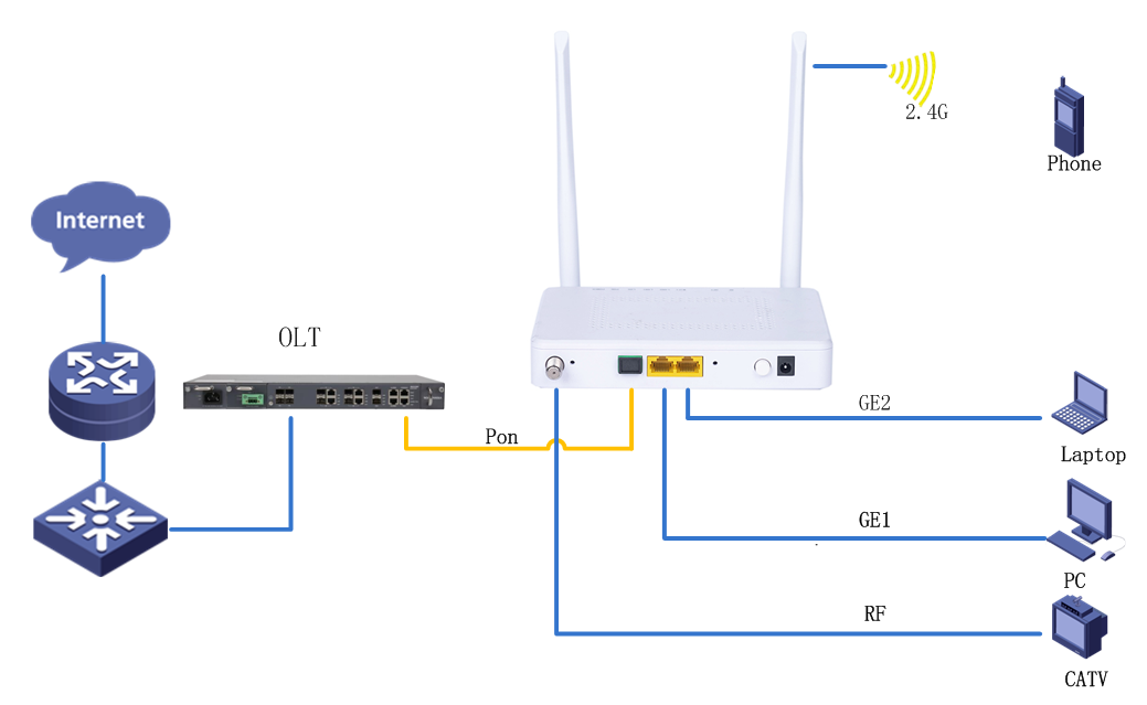 Support fast transmission of hardware NAT Hardware Specifications         interface: 1* G/EPON+1*GE+1FE+2.4G WLAN+1*RF