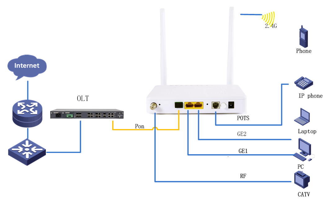Support fast transmission of hardware NAT Hardware Specifications         interface: 1* G/EPON+1*GE+1FE+2.4G WLAN+1*RF+1*FXS